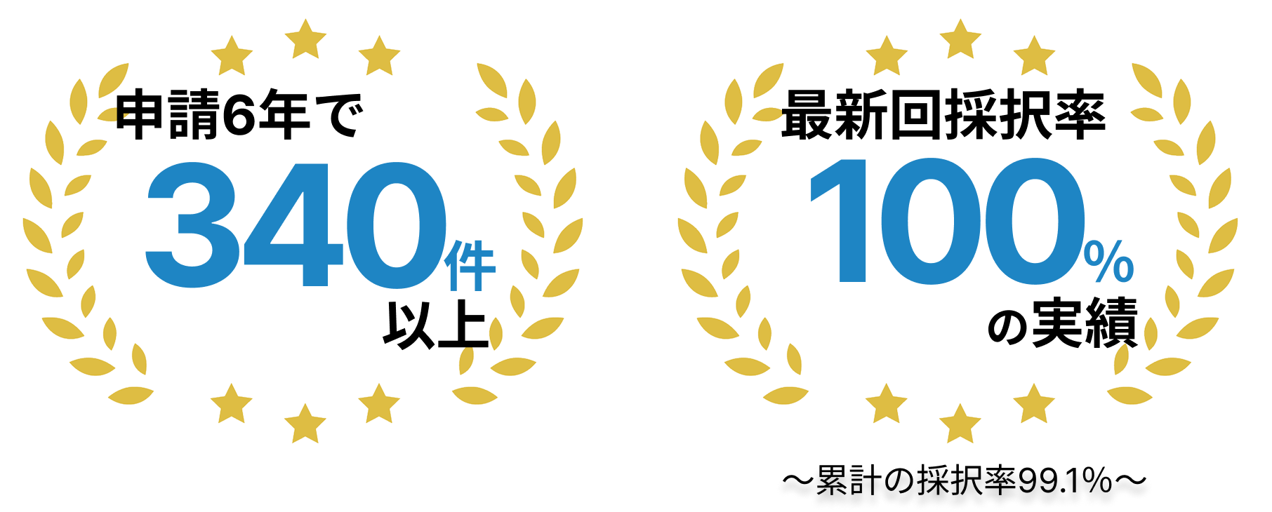 6年間で340件以上の申請を累計で99.1%通過させた実績があります